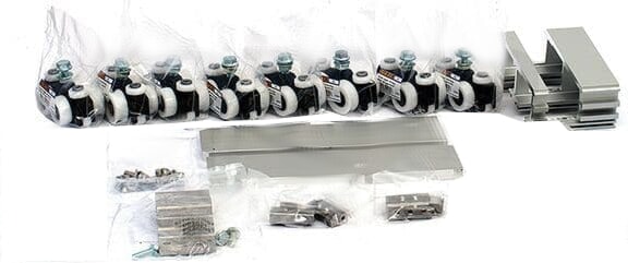 VP Aanvullende Kit passend voor GEZE SLT SLT Kit om een tweedelig te veranderen in telescopisch. SL plastic hijsapparatuur componenten, 8 wielen - 24 stuks Railmodule met kijkvenster - 3 stuks SLT zijpaneel pakket - 3 sets Staaldraad klem pakket - 6 sets