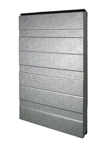 origineel, staal, paneeldikte 44mm, beide zijde voorzien van stucco profilering, werkende paneel hoogte 600mm, voorzien van twee eindstijlen met een breedte van 76mm.