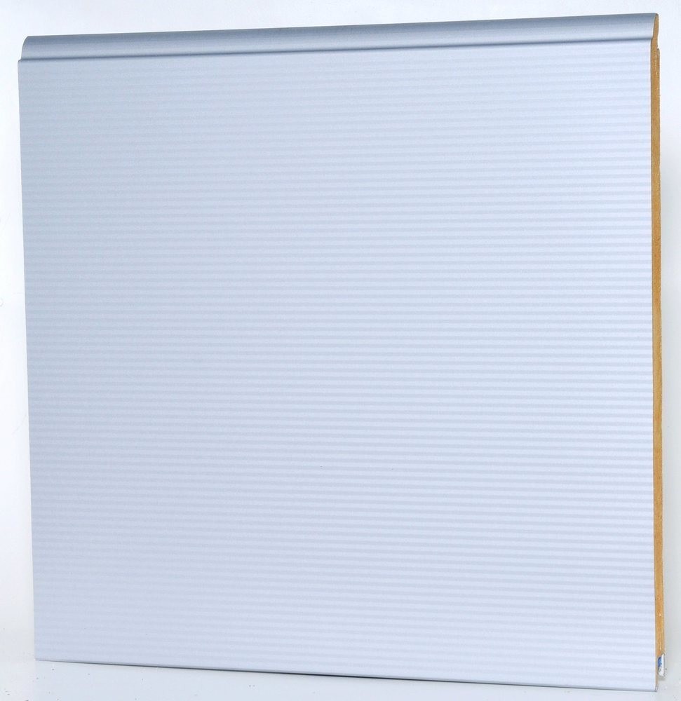 Deurpaneel staal, paneeldikte 40mm, vingerklembeveiliging, buitenzijde microribbel (h.o.h. 16mm), binnenzijde glad met plankprofiel. Hartmaat planken 122mm, werkende paneel hoogte 610mm, voorzien van twee eindstijlen met een breedte van 76mm. Standaard is de kleur aan de buitenzijde Ral 9006 en binnenzijde Ral 9002. Door weersinvloeden en productiemethoden kunnen kleurverschillen optreden.