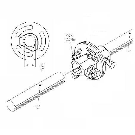 Askoppeling, verstelbaar, gietstaal, verzinkt, van1 inch naar 1,25 inch, zwart/zilver, lengte = 80mm