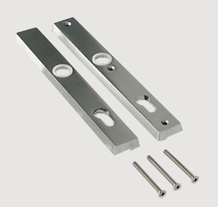 Schildset, gefreesd voor een loopdeur met slot aan rechterzijde van buitenaf gezien. DIN links. Te gebruiken bij loopdeurslot met artikelnummer 107005012.